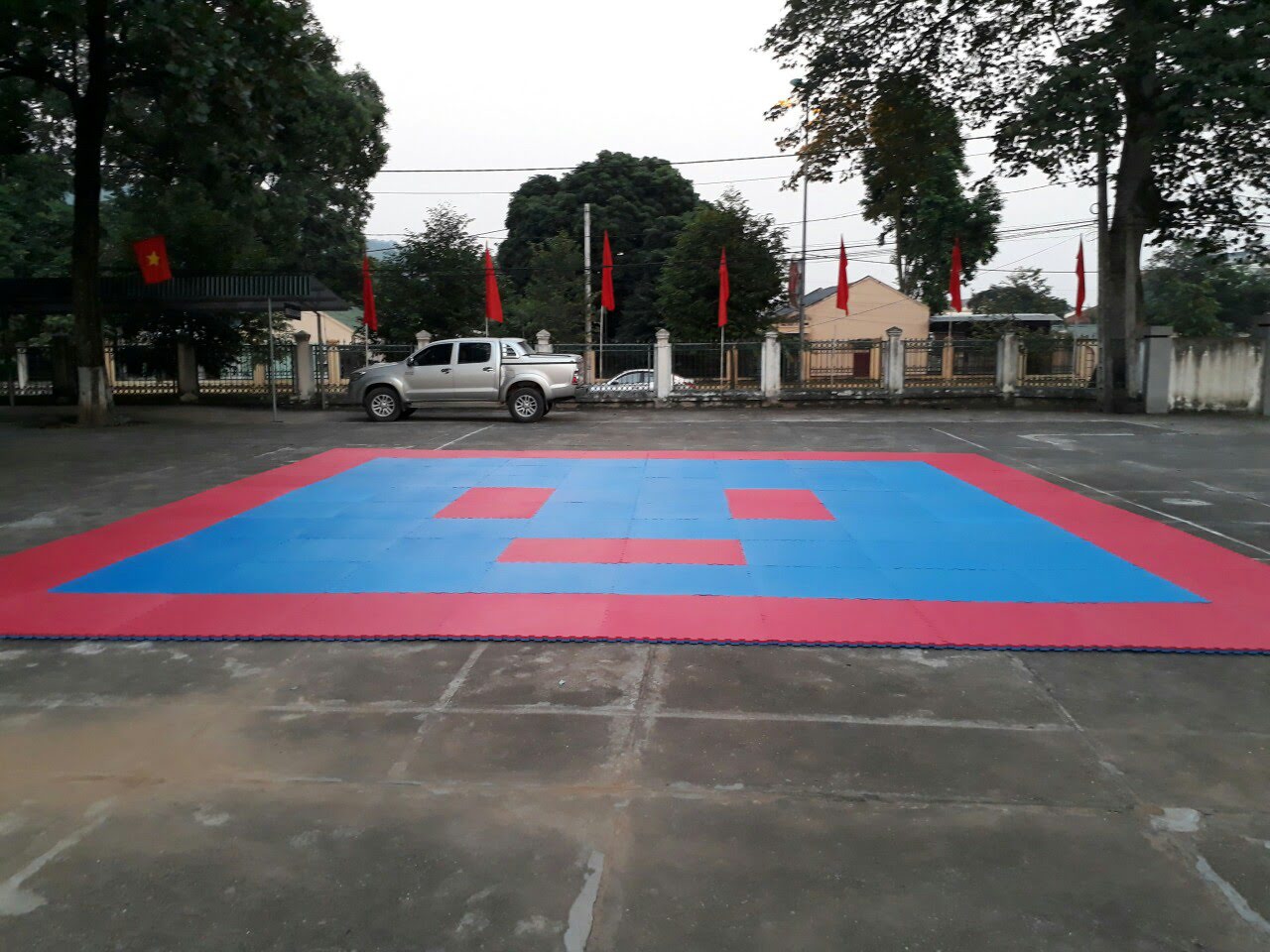 Thảm được trải tại hội làng – thảm tập võ loại 1m x 1m dày 3 cm. Thảm xanh đỏ